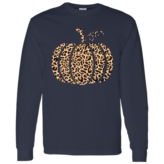 Leopard-Print Pumpkin Cute Fall LS T-Shirt
