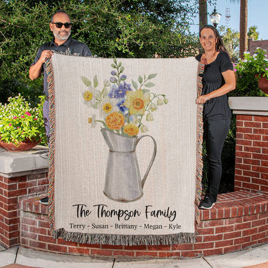 Birth Month Flower Bouquet Heirloom Woven Blanket - Personalized Gift for Mom & Grandma